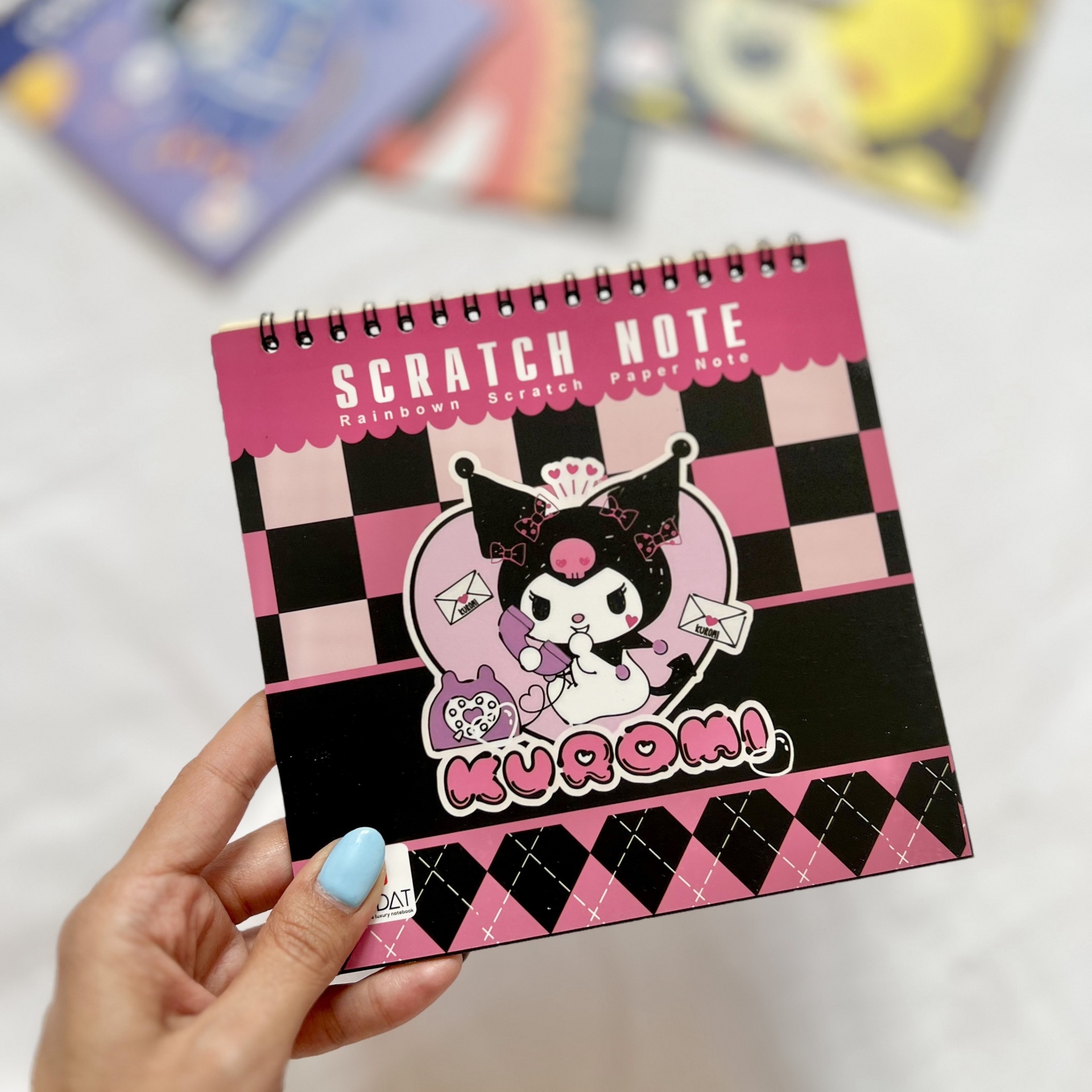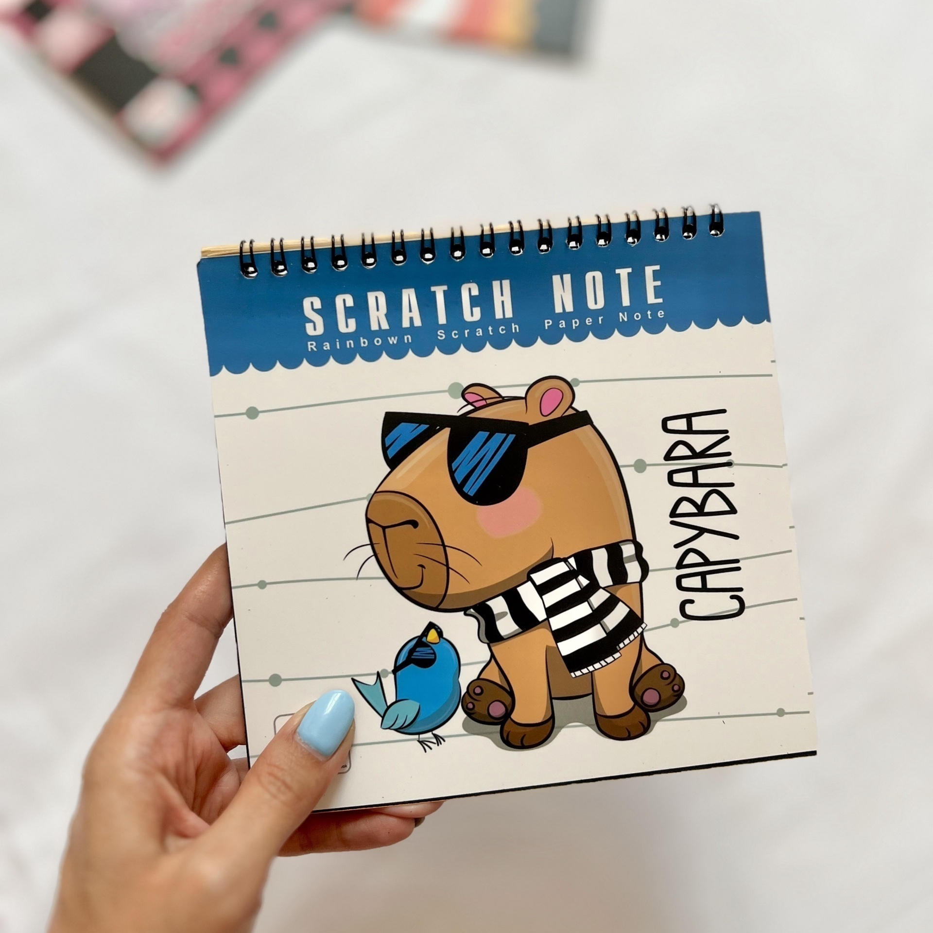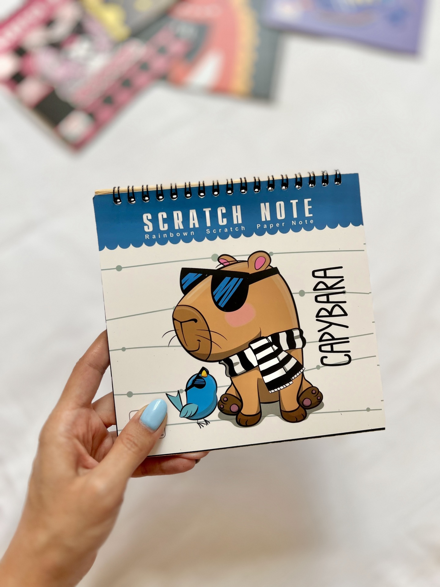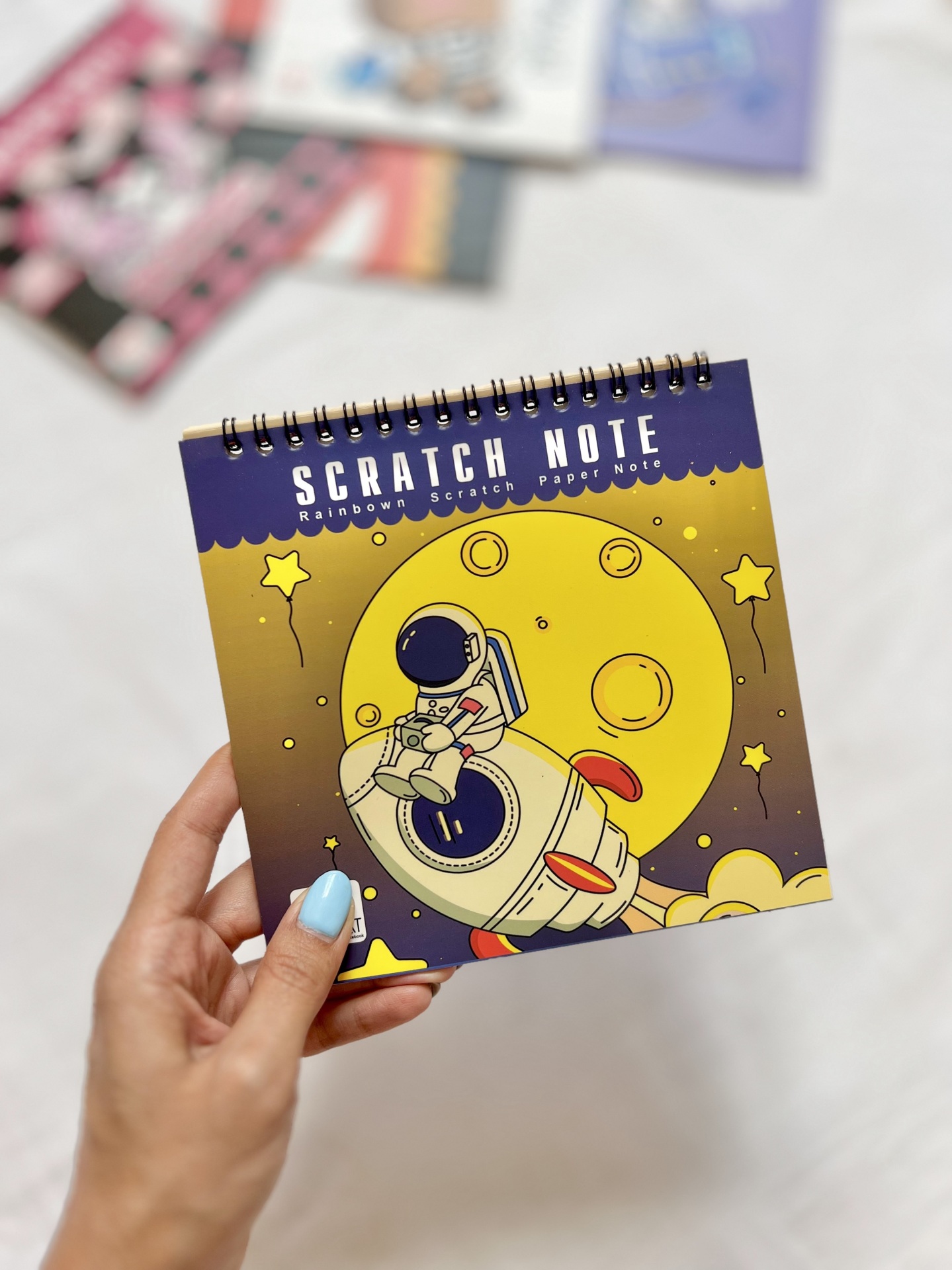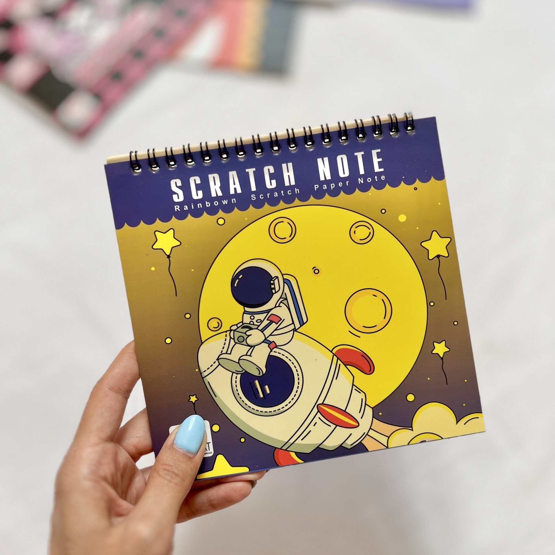 دفتر اسکرچ  یک سرگرمی جذاب و البته خلاقانه را مهمان خانه‌های شما می‌کند. این دفتر جادویی رنگین کمانی به همراه یک مداد چوبی عرضه می‌شود و پیشنهاد خوبی برای کشیدن نقاشی‌های کم هزینه و جذاب است. نحوه کار با این محصول جالب بدین صورت است که با استفاده از مداد چوبی مخصوص، صفحات مشکی دفتر را به دلخواه خود خراش می‌دهید و تصاویری ایجاد می کنید که به صورت رنگین کمانی بر روی این صفحات مشکی نمایان می شود.