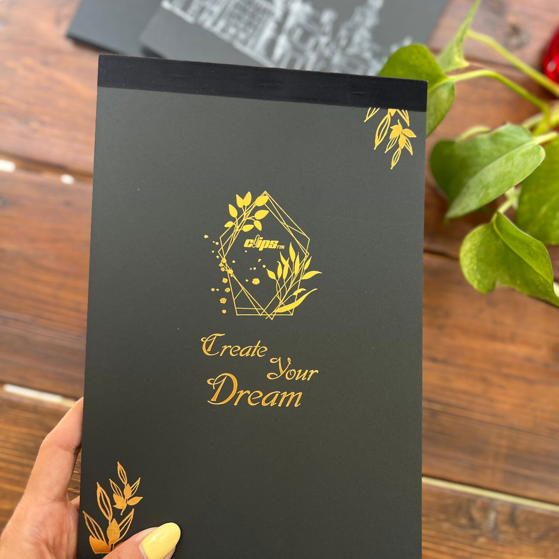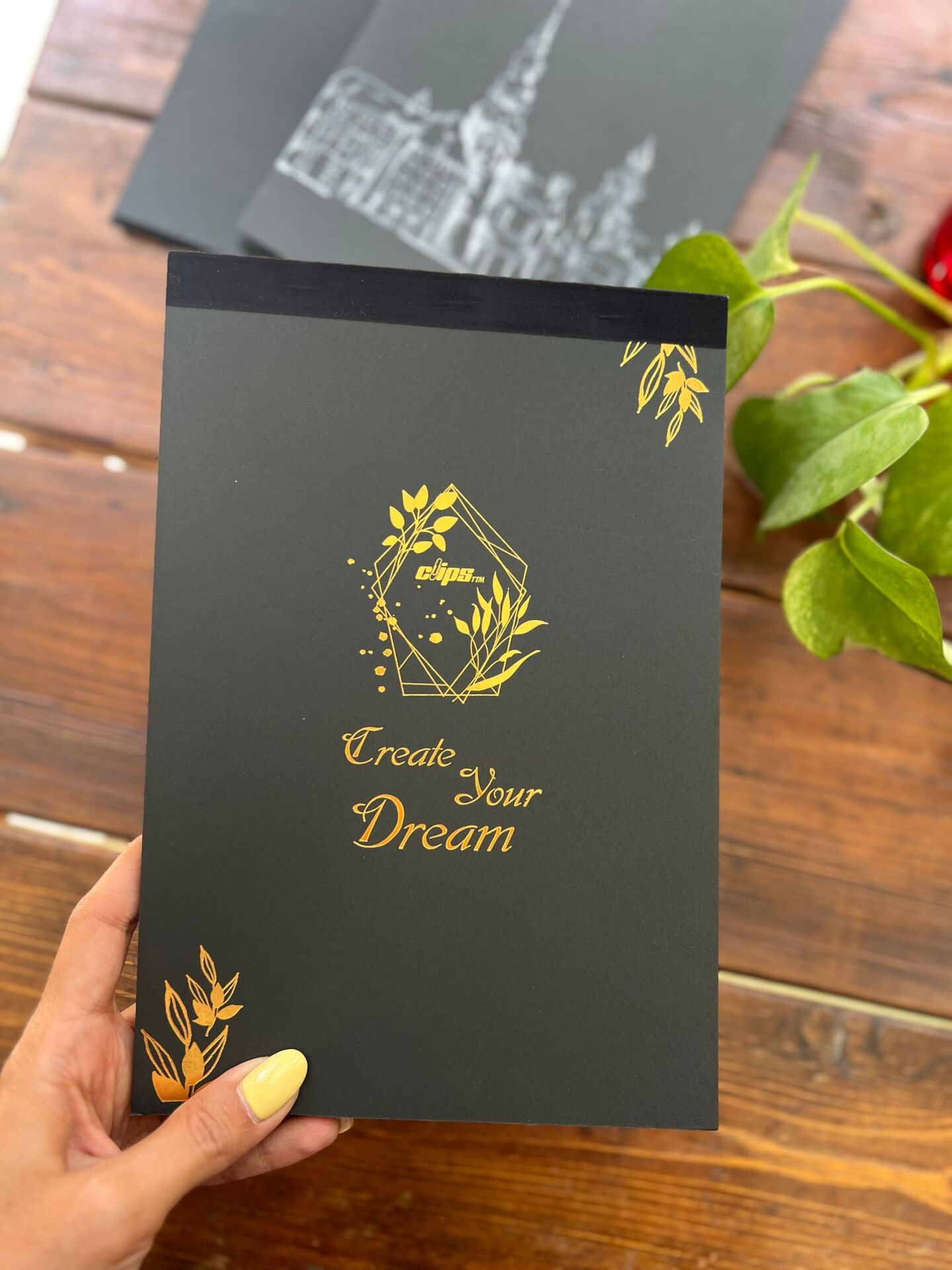اگر علاقهمند به نقاشی و طراحی با استفاده از رواننویسهای سفید و طلایی هستید دفترهای مشکی کلیپس (CLIPS) گزینهی بسیار مناسبی برای این کار است.