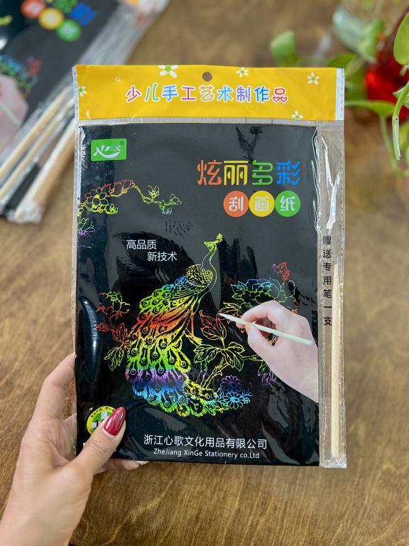 برگ اسکرچ  یک سرگرمی جذاب و البته خلاقانه را مهمان خانه‌های شما می‌کند. این برگهای جادویی و رنگین کمانی به همراه یک مداد چوبی عرضه می‌شود و پیشنهاد خوبی برای کشیدن نقاشی‌های کم هزینه و جذاب است. نحوه کار با این محصول جالب بدین صورت است که با استفاده از مداد چوبی مخصوص، صفحات مشکی دفتر را به دلخواه خود خراش می‌دهید و تصاویری ایجاد می کنید که به صورت رنگین کمانی بر روی این صفحات مشکی نمایان می شود.