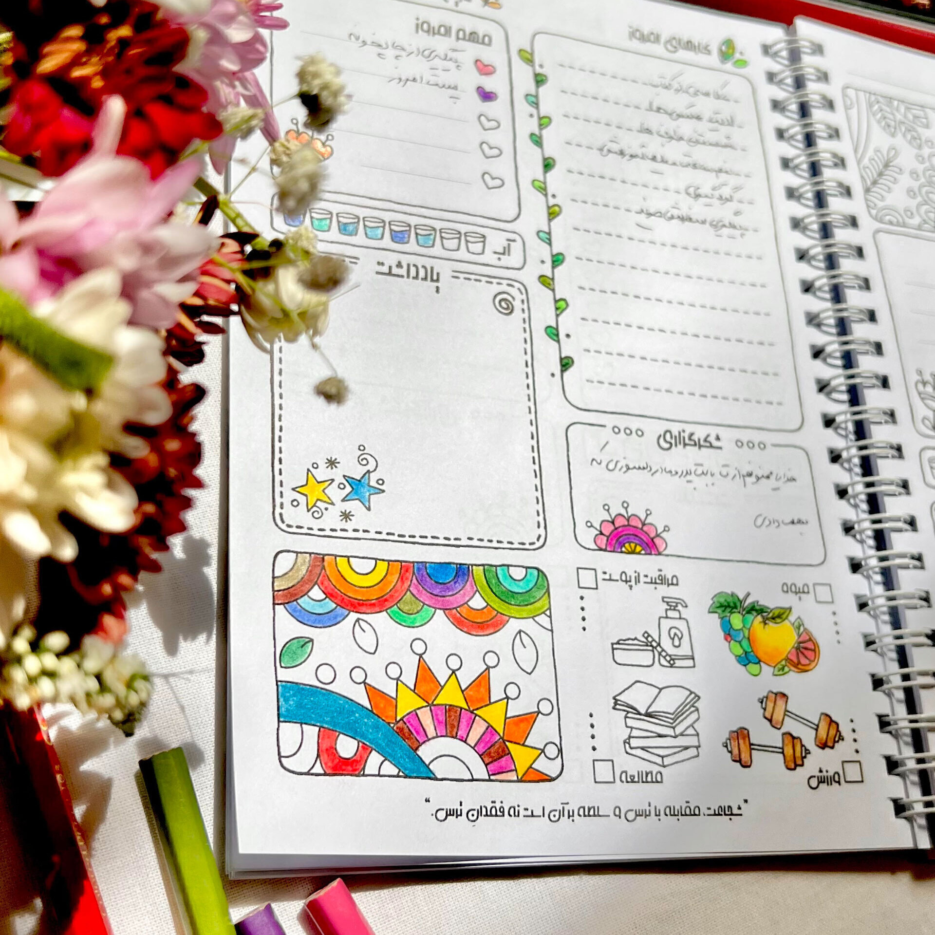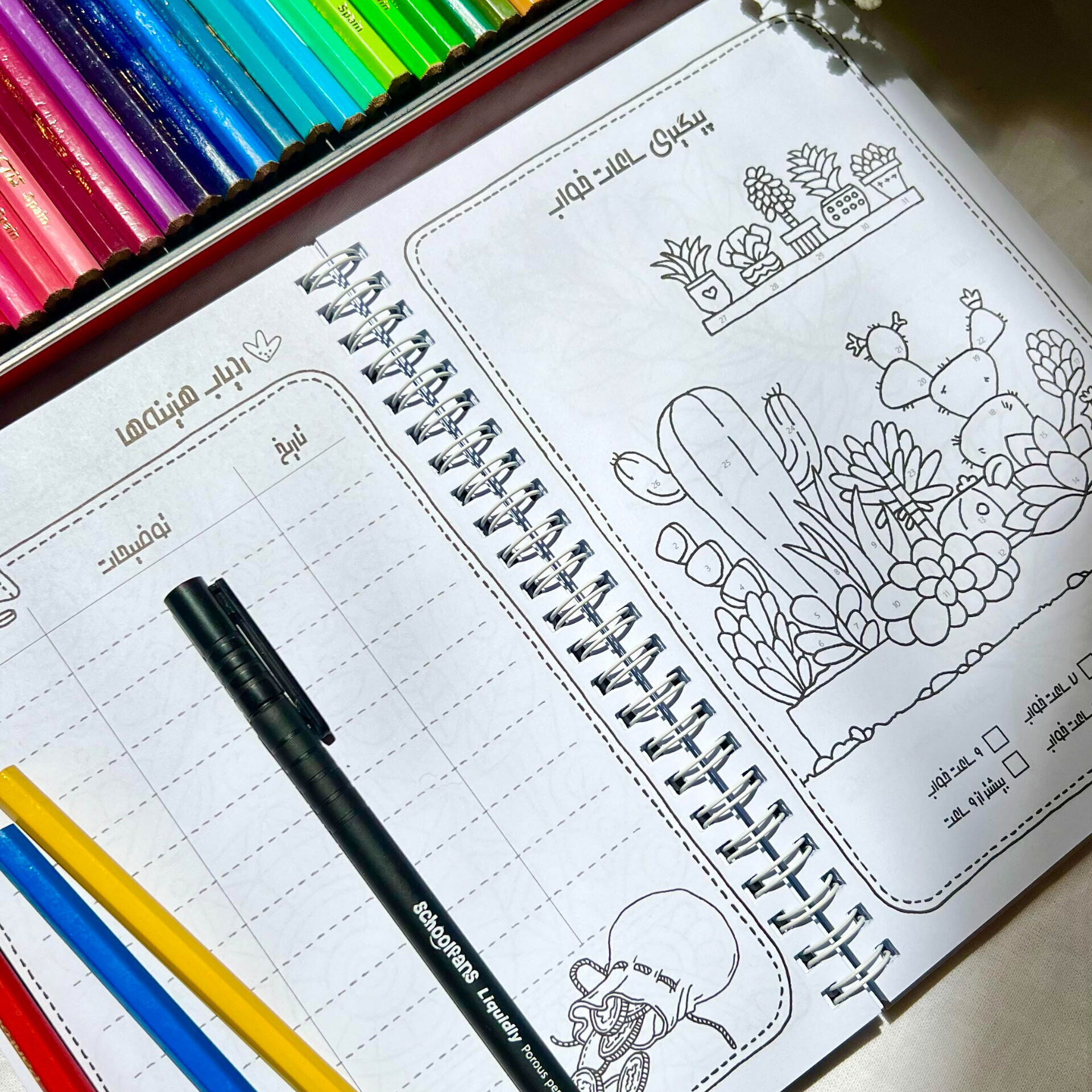 در این پلنر متفاوت و خاص که هیچ نمونهای تو بازار نداره، تلاش کردیم با ترکیب آیتمهای پلنر و طرحهای قابل رنگآمیزی، پنجرهی جدیدی به روی شما باز کنیم. با استفاده از پلنر سهماهه خطچین، با یک تیر دو نشان رو هدف بگیرید؛ کارهای رومزهتون رو ساماندهی کرده و در کنار آن با رنگآمیزی که خودش نوعی مدیتیشن هست آرامش خاطر خودتون رو دو چندان کنید.