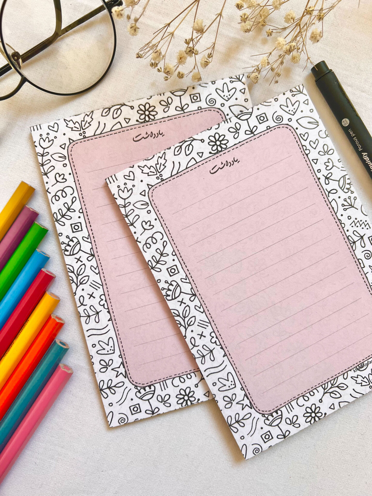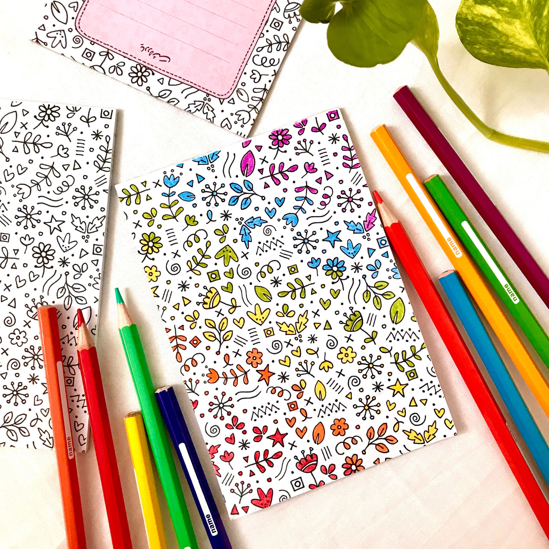 دفترچه یادداشت رنگآمیزی شامل 30برگ با ابعاد 14 در 10 سانتیمتر میباشد که بهصورت سیاهوسفید چاپ شده است. طرح این دفترچه و دفترچههای رنگی مشابه است با این تفاوت که قسمت کادر و پشت برگههای این دفترچه قابل رنگامیزی است و میتوانید به سلیقه خودتان برگههای یادداشت را رنگامیزی کنید.